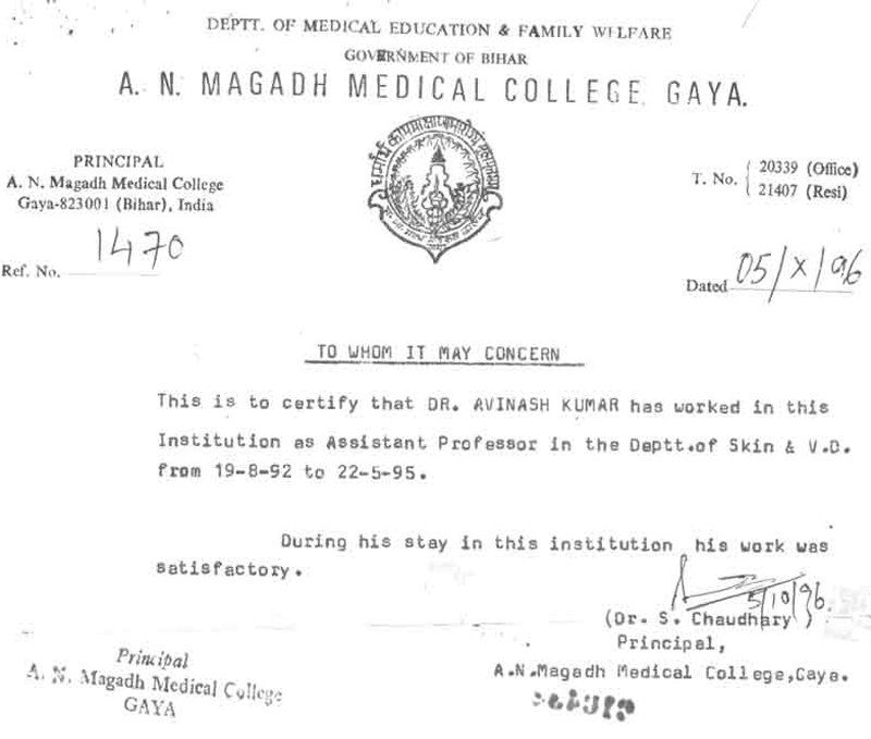 I joined Anugrah Narayan Magadh Medical College, Gaya in the capacity of Assistant Professor in the year 1992 and worked there from 19/08/1992 until 22/05/1995. This medical institute was an undergraduate government (public) institution that was managed by Government of Bihar. It was a well established institution and recognized by the Medical Council of India.